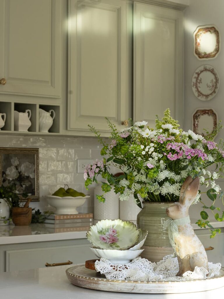 As you can see throughout this post, I keep vases of fresh flowers on the island whenever I can. I use vessels that are vintage and usually thrifted. Nothing is more warm and welcoming than nature.